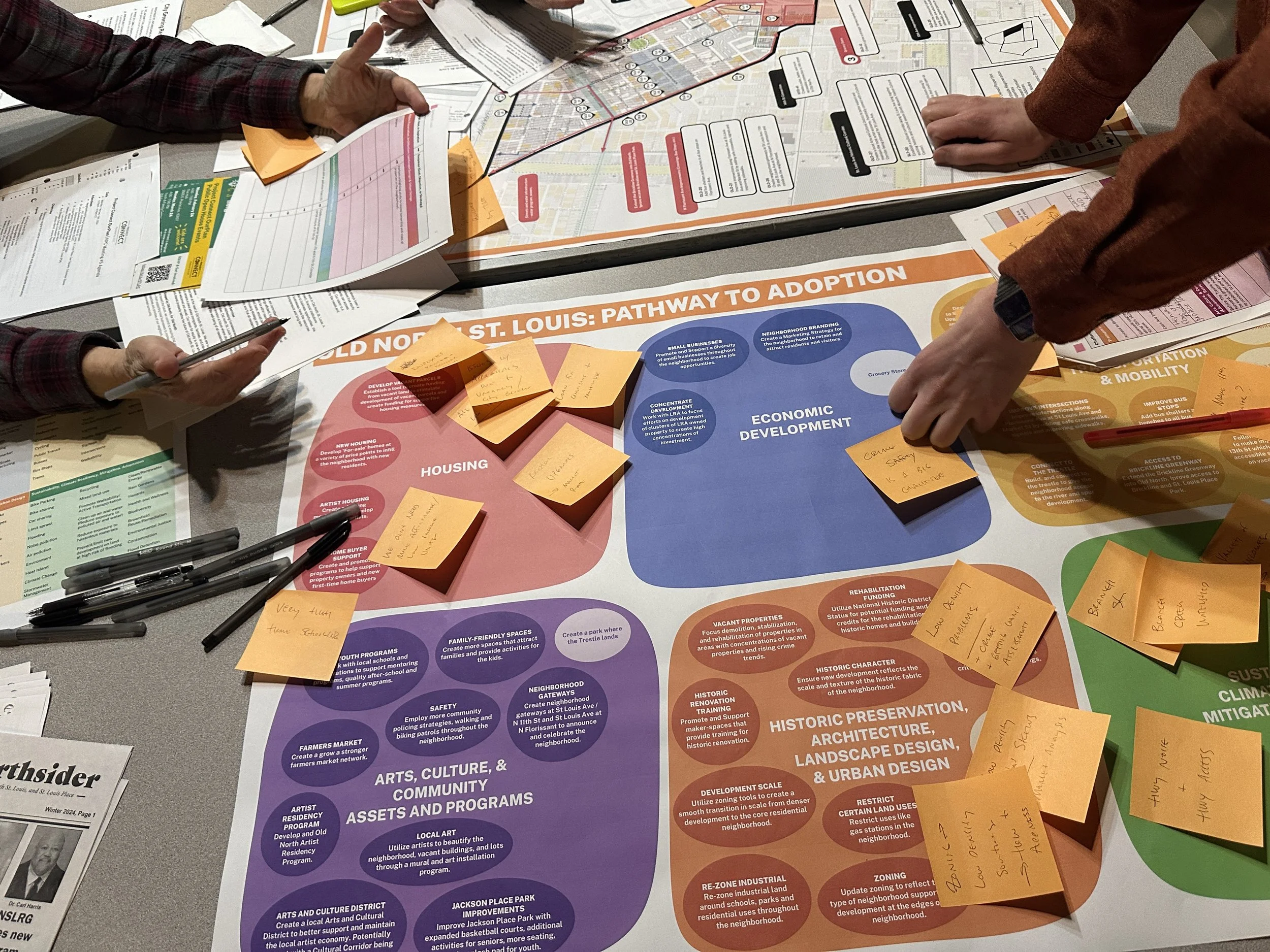 Interboro is currently leading the Project Connect OUR PLAN neighborhood planning process for six neighborhoods in North St. Louis: Carr Square, Columbus Square, Hyde Park, Jeff-Vander-Lou, Old North St. Louis, and St. Louis Place. These six neighborhoods surround the 97-acre site of the new National Geospatial-Intelligence Agency (NGA) campus, which began construction in 2020. The Project Connect area, like the rest of North St. Louis, has experienced historic disinvestment and depopulation since the mid-20th century, and the relocation of the NGA to this historic area has brought new challenges as well as opportunities. The OUR PLAN neighborhood planning process is attempting to address these issues and harness the opportunities present with a focus on preventing disinvested areas from getting left behind during future growth and development.